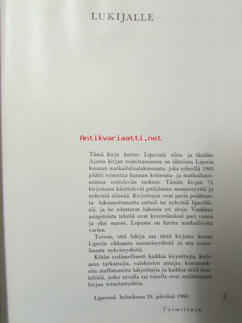 Piiroinen Viljam, Liperin kunnan matkailulautakunta, 196618 x 25 cm.