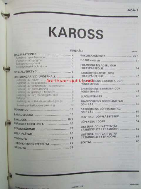 Mitsubishi Galant Hatchback - Verkstadshandbok 1987 --> Katso kuvasta tarkemmin sisällysluettelo.
