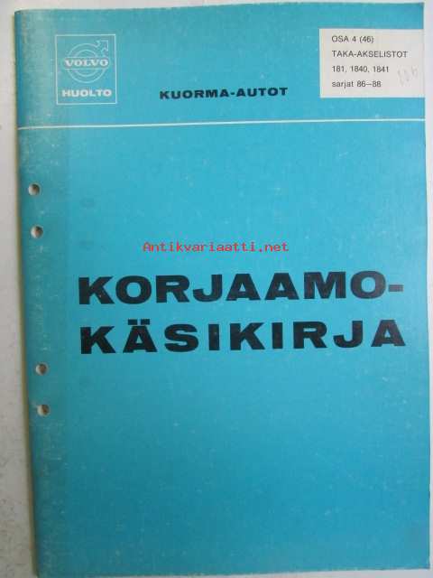 Volvo kuorma-autojen korjaamokäsikirja Osa 4 (46), Taka-akselistot 181, 1840, 1841, 86-88 sarja, Katso kuvista tarkempi sisällysluettelo