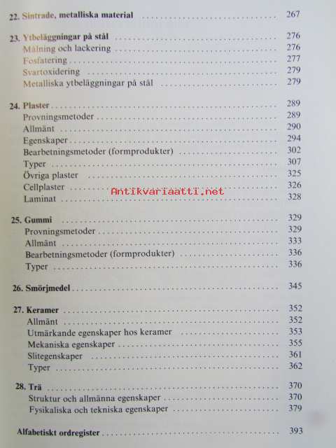 Materiallärä - Metaller, Plaster, Gummi, Smörjmedel, Keramer och Trä