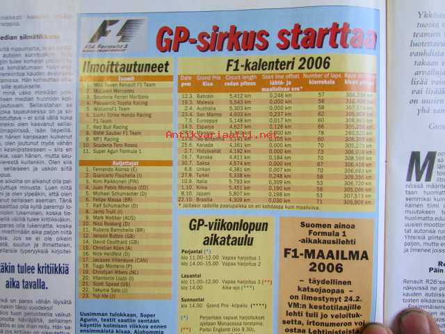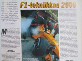 Vauhdin Maailma 2006 nr 3 -mm. Norja edolla MM-sarjaan. Ralli-SM Mikkeli. Ralli-SM nuoret ja Lady Cup Hyrylä. F-ryhmän Cup Jämsä. Rallisprint-SM Lapua. Historic Rally Trophy Kangasniemi. Kemi-ralli. Platina-ralli Sonkajärvi. Hong Kong hankiralli Vihti. Jäärata-SM Nivala. Wasa Ice Race Vaasa. Formula 1-ennakko. F1-maailmanmestari Jody Scheckter. Renaultin kilpailuhistoria Osa 3. Daytona 500. Saukkolan EK. Arctic Rally Circuit Tornio. VM moottoriklinikka Ford Fiesta ST. Snowcross-MM Lahti. Supersportin ja Superbiken MM-sarja. VM maistelee BMW K 1200 R. Jäärata-SM Mäntsälä ja Järvenpää. K1ng race 06. Vene 06 -näyttely Mika Salon uusin aluevaltaus.21 x 29 cm.