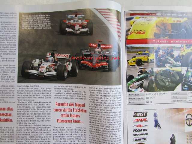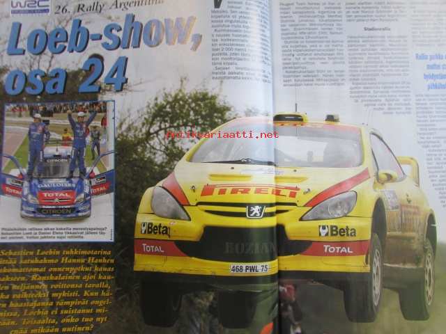 Vauhdin Maailma 2006 nr 6 -mm. Köysti Hämäläinen. Kotimaiset arvomallit. ralli-MM Argentiina, Italia. Historic Acropolis rally. Tallinna-ralli. Black Rocket -ralli Jannakkala. Renaultin F1-moottori. F1-MM Eurooppa, Espanja. Drifting. Red Bull Air Race. Rata-SM Jurva. Rallicross-SM Kouvola. Rallicross-EM Portugali, Ranska. Extreme-Rallycross ruotsi. rallisprint-SM Nurmijärvi. VM maistelee F1-auto vuodelta 2002, Skoda Octavia Combi RS. Superbike ja Supersport Italia. RR-MM Kiina,Ranska. Harraste-RR-pyörää hankkimassa osa 2/3. Enduro-MM Portugali, Espanja. Elämäni kisa Kari Kaksonen.21 x 29 cm.