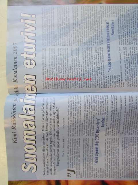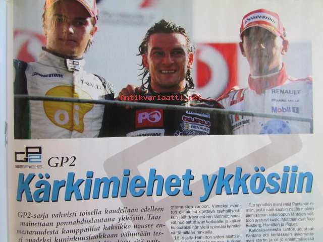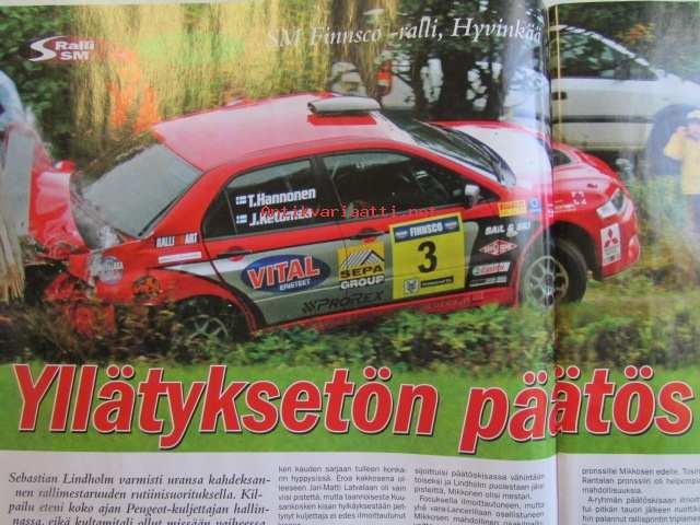 Vauhdin Maailma 2006 nr 11 -mm. Ralli-SM Uusikaupunki, Hyvinkää, Ahvenisto. Ralli-MM Japani, Kypros. Ralli-SM Nuoret ja Lady Cup Naantali, Kerava. Historic Rally Trophy Tuusniemi. F-Cup Laihia. F1-MM Turkki. Kimi Räikkönen ja Heikki Kovalainen. GP2-sarja. IRL-sarja USA. Rallisprint-SM Huittinen. Gulf Historic Race -kilpasarja. Drag SM ja PM, FHRA Defa-Finals Alastaro. SRC-SM Oulu ja Alastaro. Rallicross-EM. JM-liigafinaali Valkeala. RR-MM Malesia, Australia, Japani. Sivuvaunu-MM Hollanti, Ruotsi. RR-pyörä Saksasta osa 3. Enduro-MM Slovakia, Ranska. Motocrossin joukkue-MM Englanti. VM vertailee Rallisprint-autot. Peugeot 207 Super 2000. Elämäni kisa Pentti sinkkilä.21 x 29 cm.