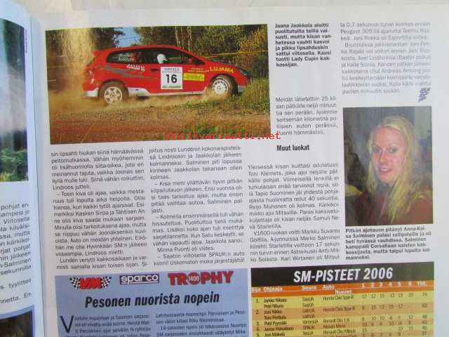 Vauhdin Maailma 2006 nr 11 -mm. Ralli-SM Uusikaupunki, Hyvinkää, Ahvenisto. Ralli-MM Japani, Kypros. Ralli-SM Nuoret ja Lady Cup Naantali, Kerava. Historic Rally