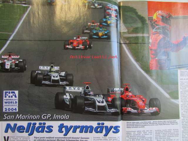 Vauhdin Maailma 2004 nr 5 -mm. RR-MM Welkom, Enduro-MM Italia, Speedwayn GP-sarja. VM esittelee Suzuki GSX-R 600, Motocross-SM 2014, Formula 1 Bahrain, San Marino & Saksa, DTM Saksa, Rata-SM 2014, Ralli-MM Uusi Seelanti, VM esittelee Dodge Viper GTS-R "Kuismanen", VM Moottoriklinikka Volvo S40 SRC, VM Maistelee BMW Z4 Ford STreetKa, FHRA American Car Show & Tuning Car Show Helsinki, Elämäni kisa Gedy Salutskij.21 x 29 cm.
