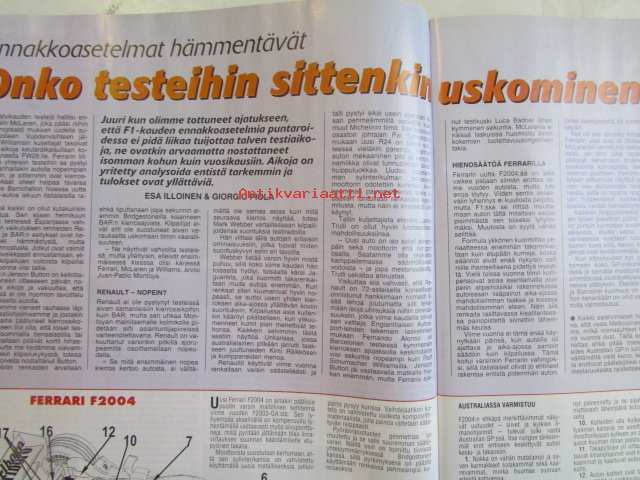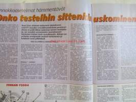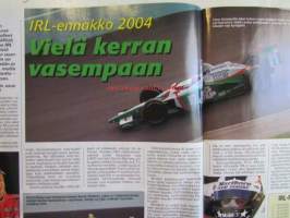 Vauhdin Maailma 2004 nr 3 -mm. Ralli-SM Lapua & Ruotsi, Ralli-SM Nuoret & Lady-Cup Valkeala, Rallin F-CupAlavus, Historic Ralli Trophy Savolinna, Tapio Laukkanen, Formula 1 2004, IRL, Formula V Suomessa osa V, Jäärata-SM Varkaus, Ylivieska & Varkaus, VM Vertailee, Jäällä kahdella ja neljällä pyörällä, VM esittelee Peugeot 307 WRC, Moottoriklinikka BMW M3 Coupe ryhmä F. VM Maistelee Citroen C2 1,6i 16V VTR, M itsubishi Lancer STW 2,0 Sport, Sercedes-Benz C-Sarja, Lotus Elise, Jäärata-SM Kuusankoski, Mäntsälä & Järvenpää, Snowcross-MM Lahti, Motocross-MM, Elämäni kisa Pertti Luhtasuo.21 x 29 cm.