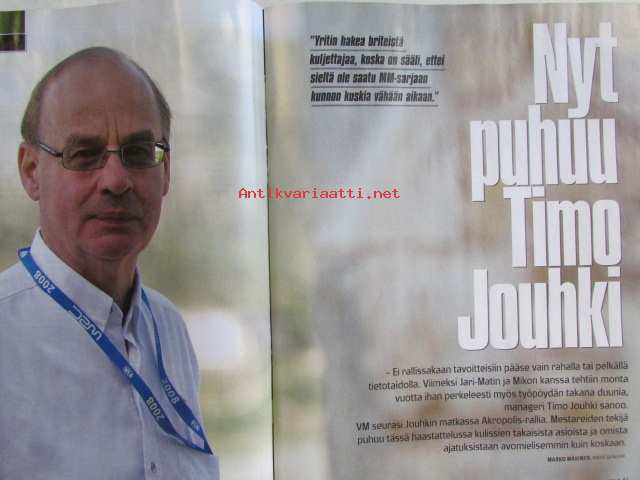 Vauhdin Maailma 2008 nr. 7 -mm. Puheenaihe. makasiini. Galleria. Kolumni Jume. teema. Käsityökilpuri. Kesän kuuma kuskiranking. Temppu ja kuinka se tehtiin. F1-aerodymaniikka. F1-makasiini. Kolumni Clarkson. Nyt puhuu Timo Jouhki. Alenin autot. uuden WRC:n aihio. Maisteritason kuljettajat. kolumni Vainio. Mika Kallion ajovinkit. Rapakon takana. Kallis kiihdytys. Le Mansin velho. F1 Kanada, Ranska GP. WRC turkki. SM-ralli Kerava. Rata-SM Alastaro. SM-rallisprint. SM-karting Lapinlahti. SM-karting Joensuu.22 x 29 cm.