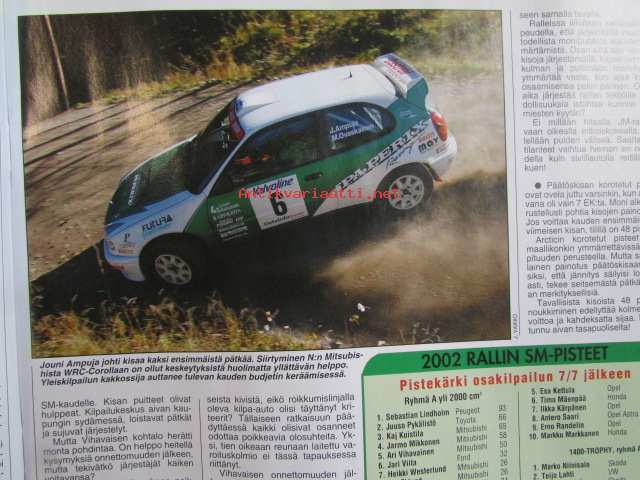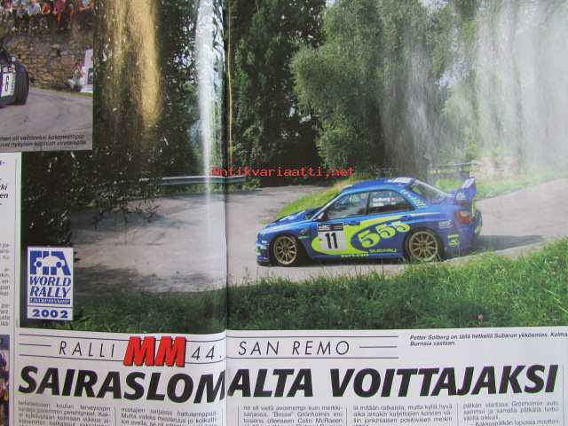 Vauhdin Maailma 2002 nr 11 -mm. Ralli-SM Hyvinkää & San Remo, Ralli-SM Nuoret & Naiset Kerava, F-Cup Tampere, Historic Rally Trophy Alajärvi, Formula 1 Italia &