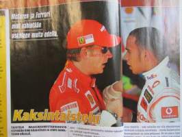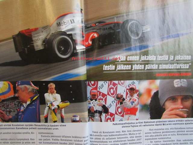 Vauhdin Maailma 2008 F1-kausi -mm. Puheenaihe Kimi Räikkönen ja lewis Hamilton. Makasiini Tallit, Kuskit, Osakilpailut. Galleria Tähtihetket. Kolumni JuMe