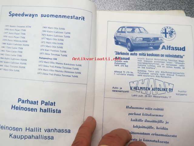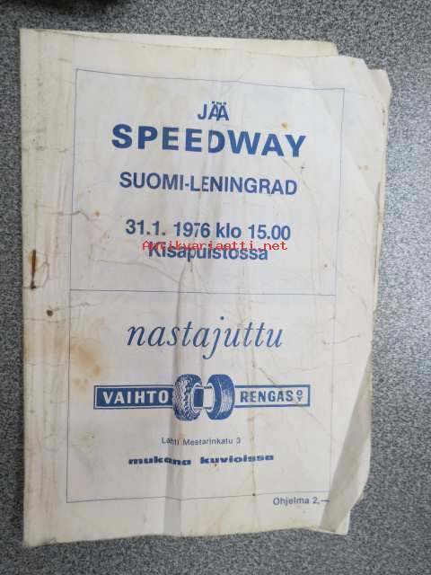 Jääspeedway Suomi-Leningrad 31.1.1976 Kisapuistossa -käsiohjelma