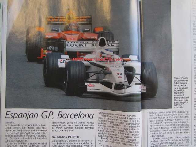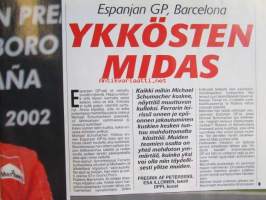 Vauhdin Maailma 2002 nr 6 -mm. Formula 1 Espanja, Itävalta & Monaco, Indy 500, Rata-SM Ahvenisto & Motopark, Kuorma-autojen EM Espanja & Italia, Ralli-MM