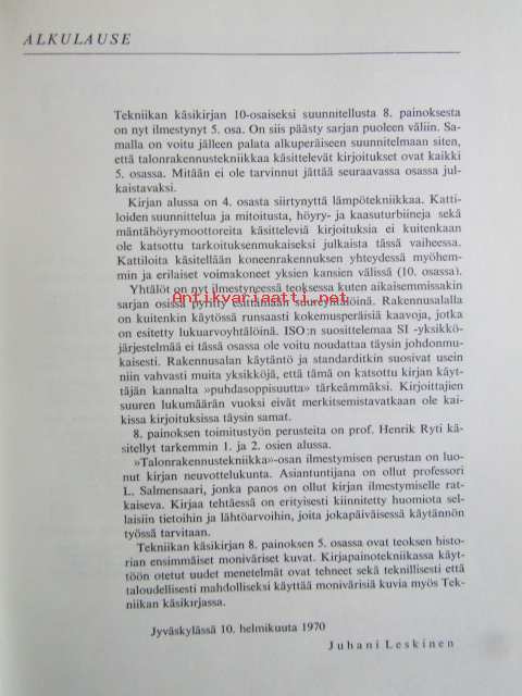 | Saatavilla | 1 kpl | | Julkaisuvuosi | 1970 | | Sivuja | 711 | | Painos | 8. | | Kunto | K3 | | Kansipaperi K2 | | Sidonta/painoasu | Sidottu (kansipaperit) | | Kielet | Suomi |