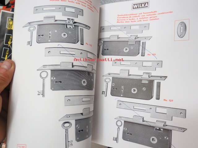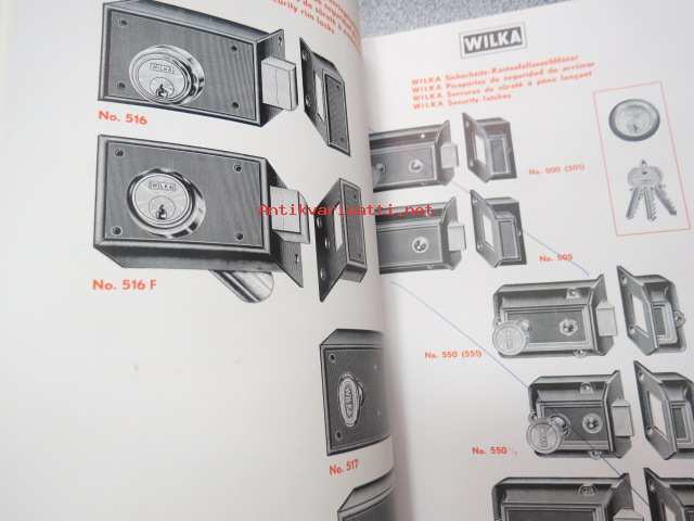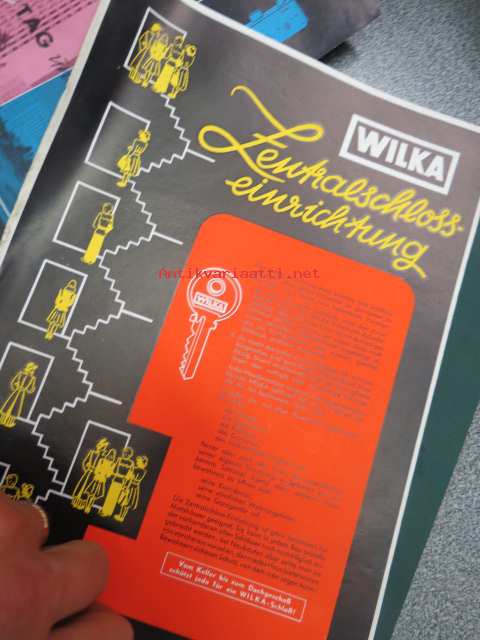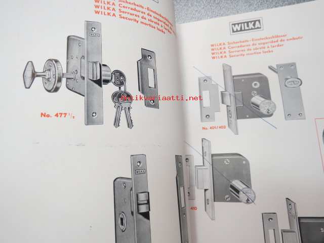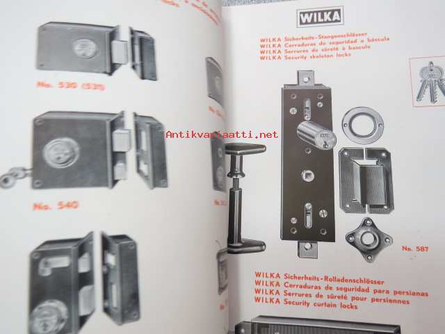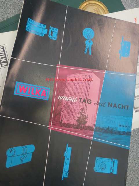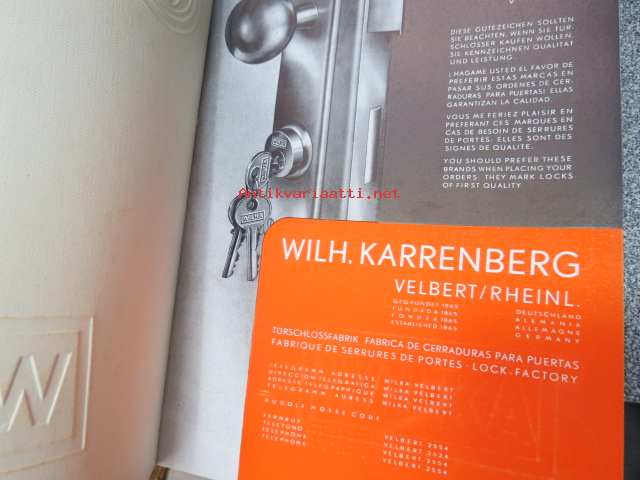 Wilka / Wilhelm Karrenberg - lukkojen ja lukitushelojen tuoteluettelo + 2 erilstä esitettä, kannessa kohopainettu kullanvärinen lukkokehä