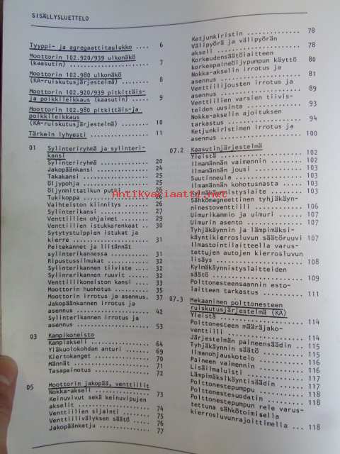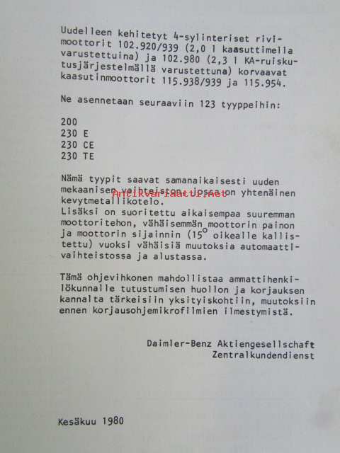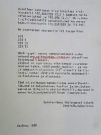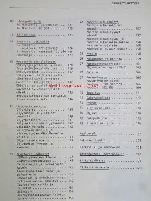 Mercedes-Benz Moottorilla 102 varustetut henkilöautotyypit - Ohjevihkonen huoltoa varten, Katso tarkemmat mallit ja sisällysluettelo kuvista