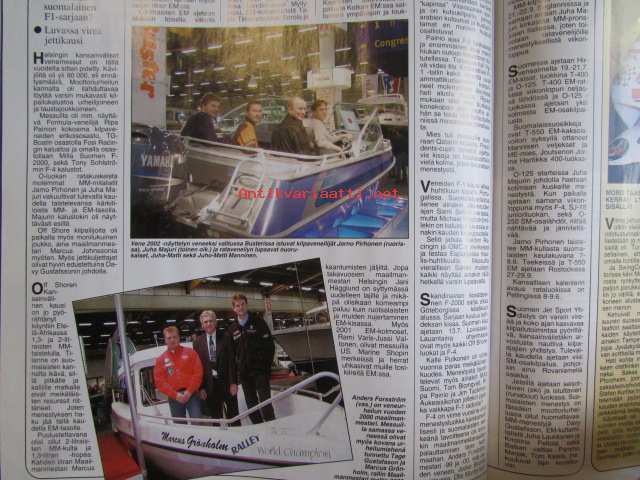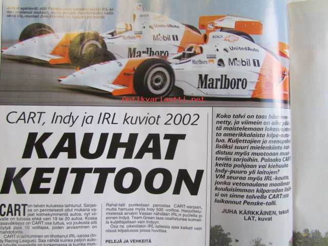 Vauhdin Maailma 2002 nr 3 -mm. Formula 1 Australia, Formula 1 tekniikka, Ralli-mm Ruotsi, Ralli-SM Lapua, Ralli-SM Nuoret & Lady Cup Savolinna, F-ryhmän cup Lempäälä, Historic Rally Trophy Janakkala, Jäärata-SM Kurikka & Kauhava, CART & IRL, Daytona 24 h, Tyrrellin historia osa 1, American Car Show, Jäärata-SM Kuopio, Järvenpää & Orevesi, VM esittelee Honda RC 114/116, VM esittelee Art-Superside, VM moottoriklinikka, Elämäni kisa Minna Sillankorva.21 x 29 cm.