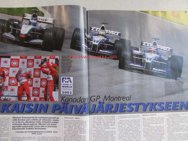 Vauhdin Maailma 2002 nr 7 -mm. Formula Super A MM-Karting Alahärmä, Formula 1 Kanada & Saksa, Le Mans 24h, CART & IRL Milwaukee, Laguna Seca, Portland & Teksas