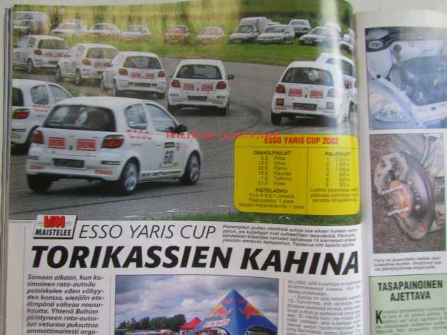 Vauhdin Maailma 2002 nr 7 -mm. Formula Super A MM-Karting Alahärmä, Formula 1 Kanada & Saksa, Le Mans 24h, CART & IRL Milwaukee, Laguna Seca, Portland & Teksas Pikes Peak, Rata-SM Alastaro, Kuorma-autojen FIA EM-Cup Itävalta & Ranska, Ralli-MM Kreikka, Valkeakoski, JM-SM naiset, & Nuoret Punkalaidun, Rallicross-EM Itävalta & Tsekki, VM Maistelee Toyota Yaris Esso Cup, VM Maistelee Hyundai Coupe 2,7 V6 FX, RR-MM Italia & Katalonia, VM Maistelee Kawasaki ZX-12R, F1 veneet MM, Helsinki, Elämäni Kisa Matti Salonen.21 x 29 cm.