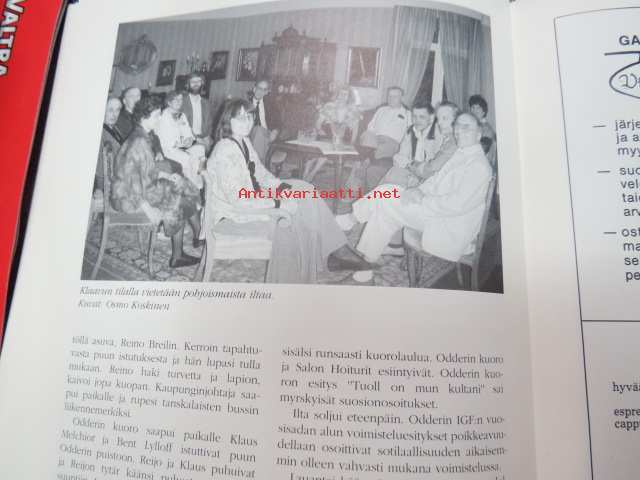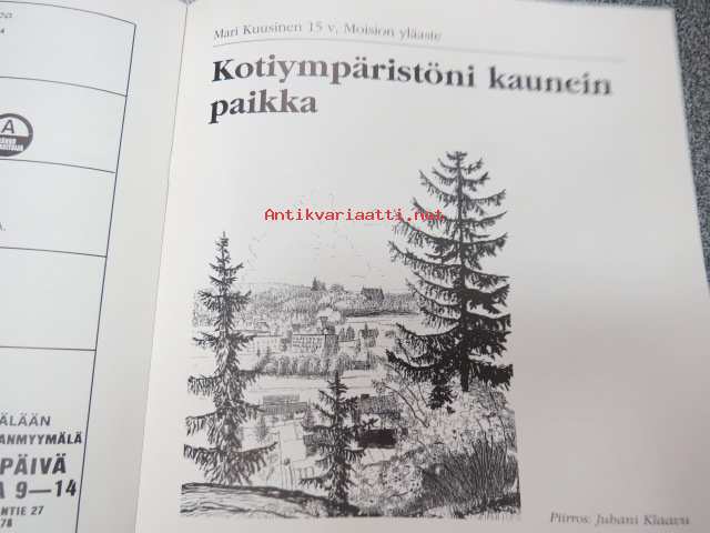 | Saatavilla | 1 kpl | | Julkaisuvuosi | 1991 | | Sivuja | 48 | | Painos | 1. | | Kunto | K3 | | Sidonta/painoasu | Nidottu (pehmeäk.) | | Kielet | Suomi |