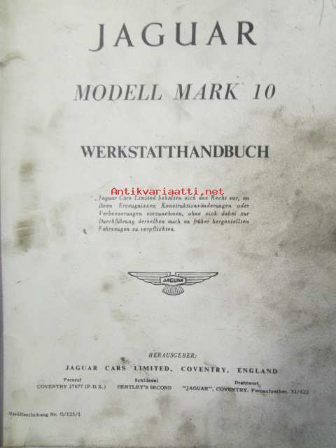 Jaquar Modell Mark 10, Werstatthandbuch - Korjaaamokäsikirja, Katso tarkemmat mallit ja sisällysluettelo kuvista