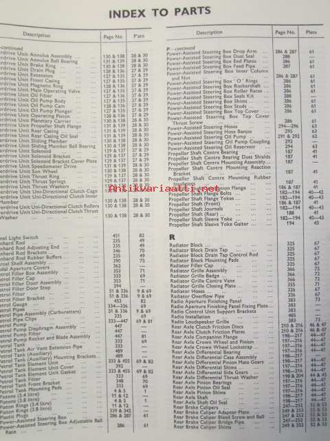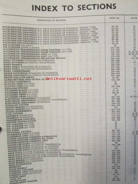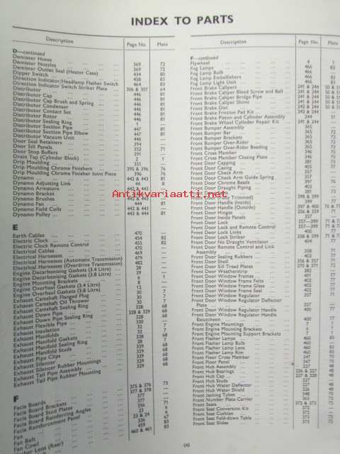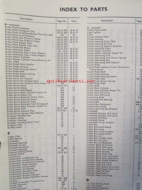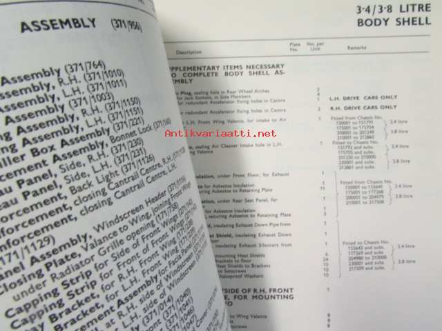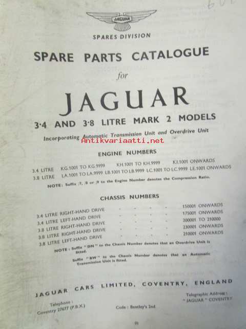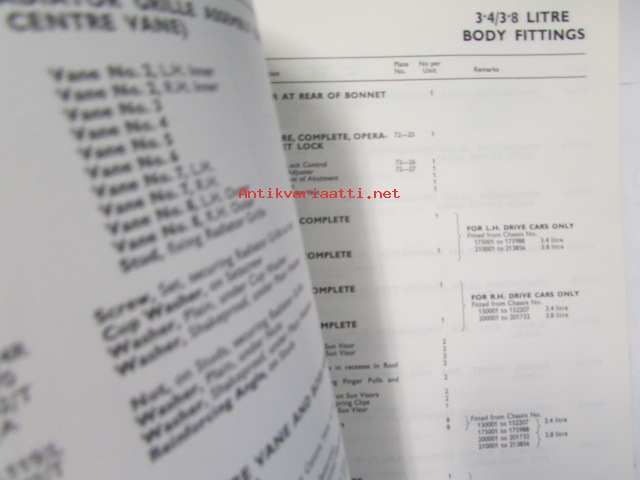 Jaguar 3.4 and 3.8 Litre Mark 2, Spare Parts Catalogue -varaosaluettelo, Katso tarkemmat mallit ja sisällysluettelo kuvista