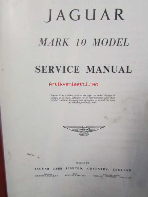 Jaquar Mark 10 model, Service Manual - Korjaaamokäsikirja, Katso tarkemmat mallit ja sisällysluettelo kuvista