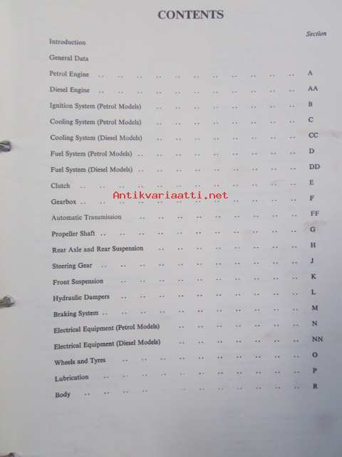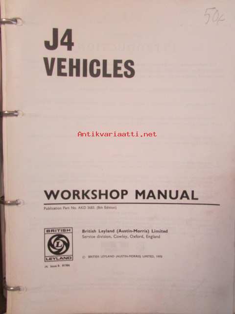 British Leyland J4 Vehicles (AKD 3683), Workshop Manual, Katso tarkemmat mallit ja sisällysluettelo kuvista