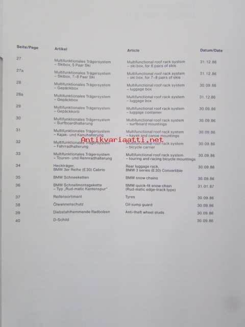 BMW Accessoires Katalog 1 - Lisätarvike katalogi, Katso tarkemmat mallit ja sisällysluettelo kuvista