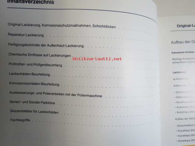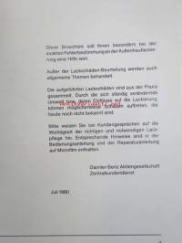 Mercedes-Benz Service - Lackierung -perinpohjainen sakasankielinen kirja autojen pintakäsittelystä ja sen erikoisuuksista, runsas kuvitus