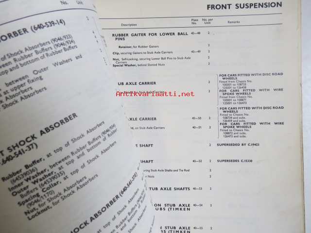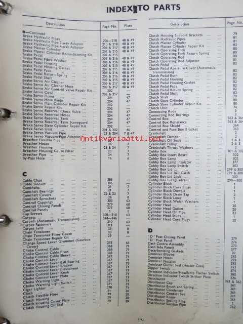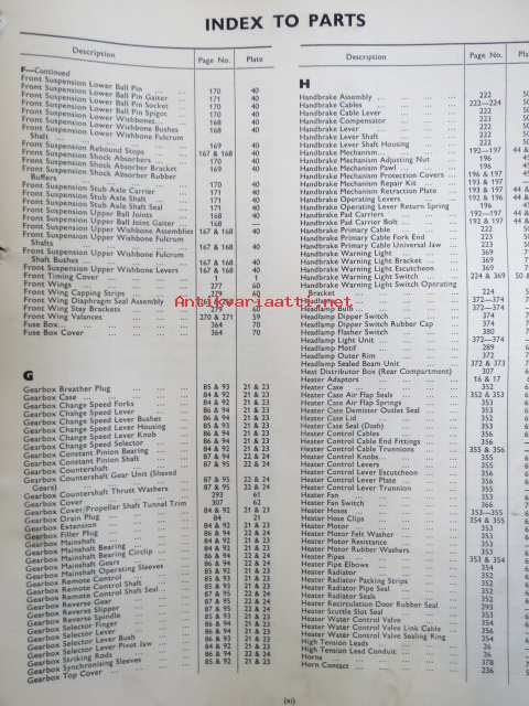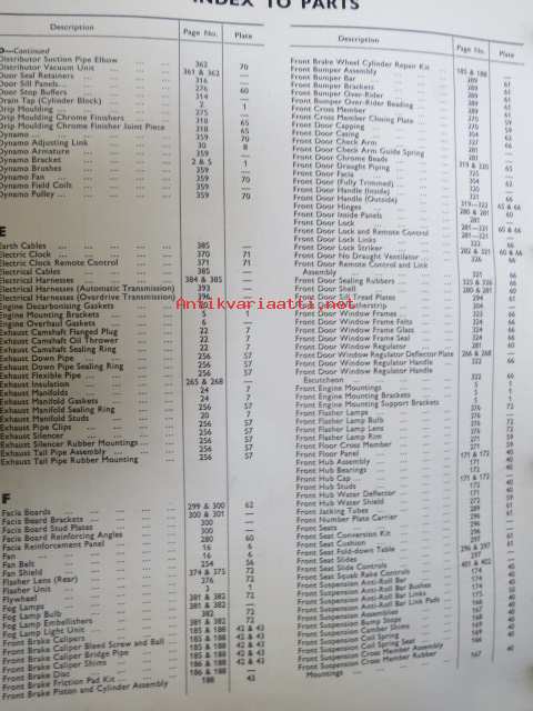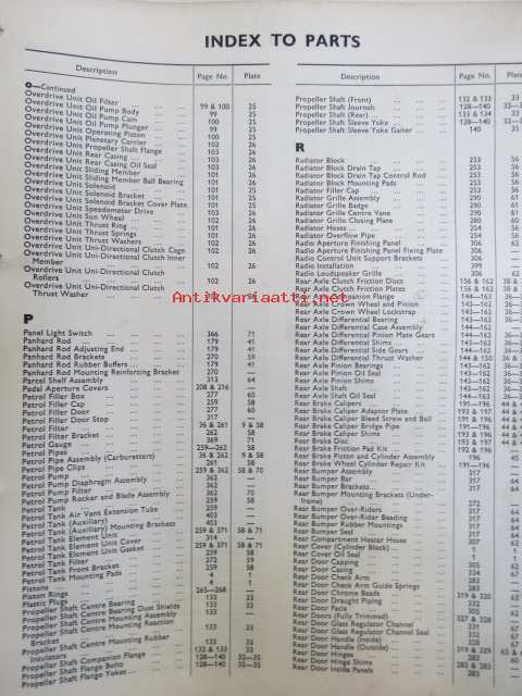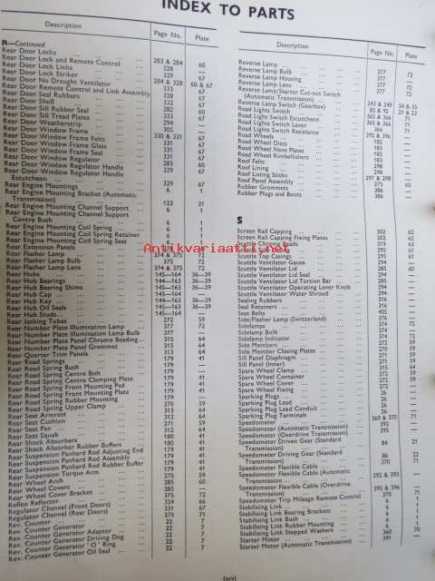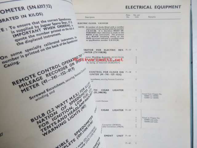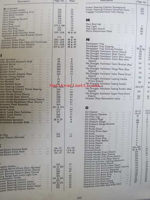 Jaguar 2.4 Litre Mark 2, Spare Parts Catalogue -varaosaluettelo, Katso tarkemmat mallit ja sisällysluettelo kuvista
