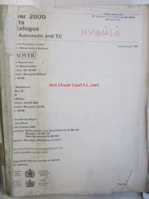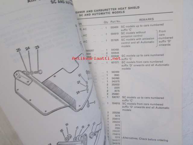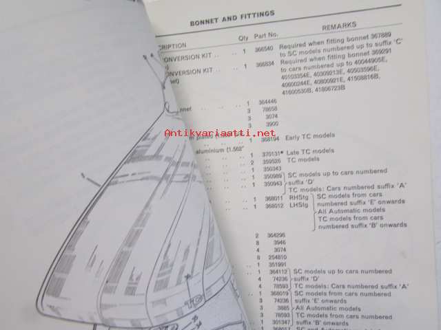 British Leyland Rover 2000 Parts Catalogue SC Automatic and TC - Varaosakirja, Katso tarkemmat mallit ja sisällysluettelo kuvista