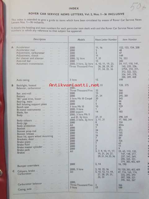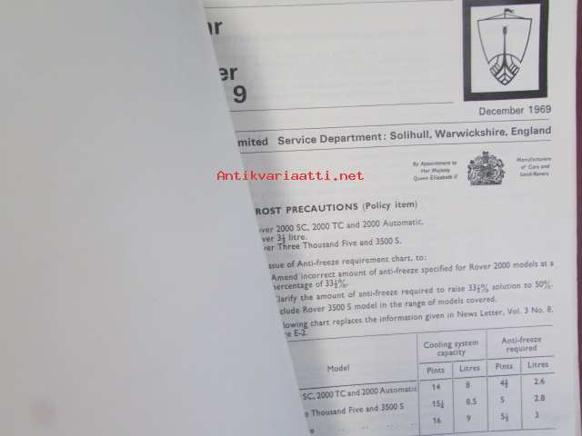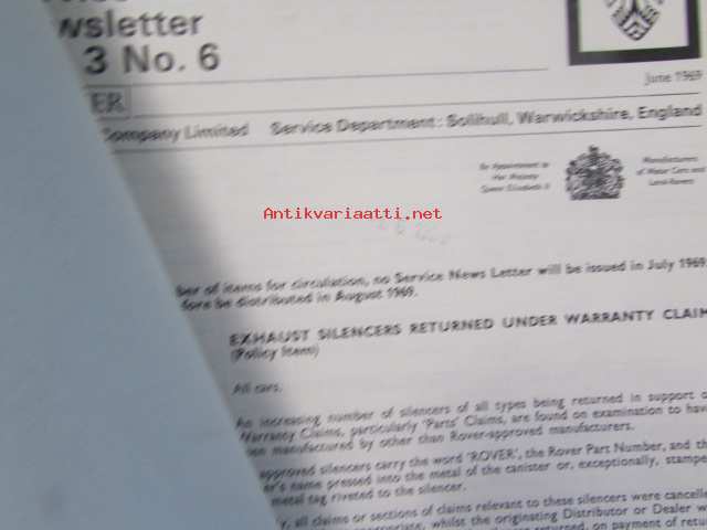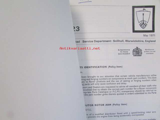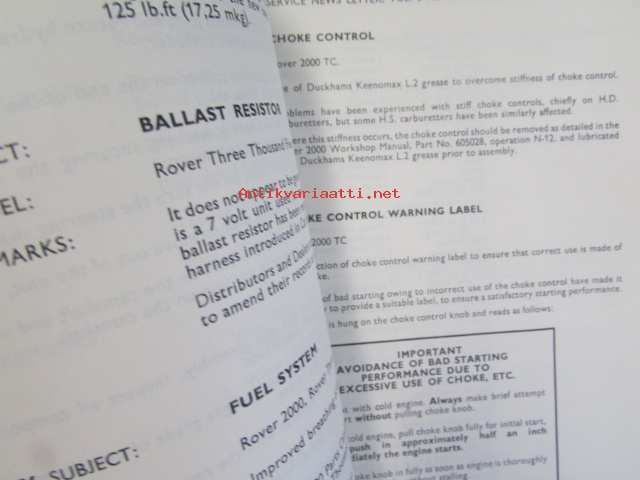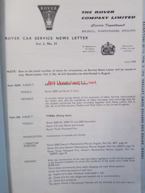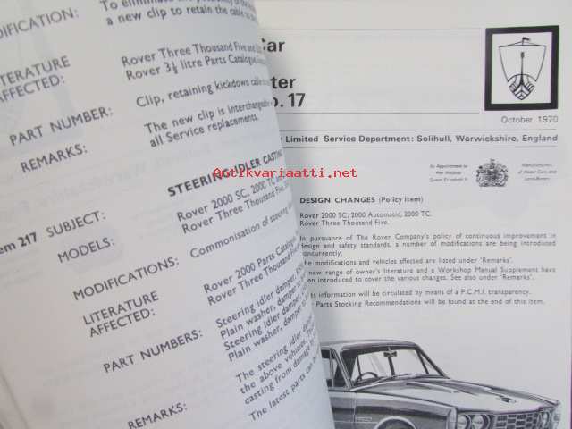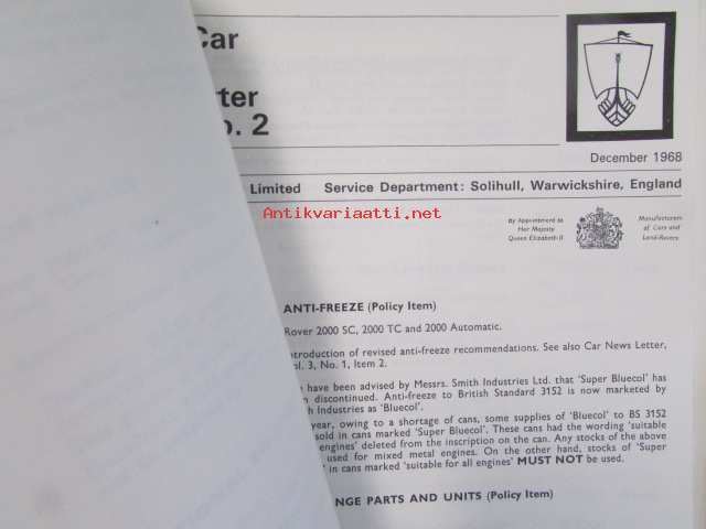 British Leyland Rover Car Service letters volume 2 1968-1972 - Huoltokirjeet, Katso tarkemmat mallit ja sisällysluettelo kuvista
