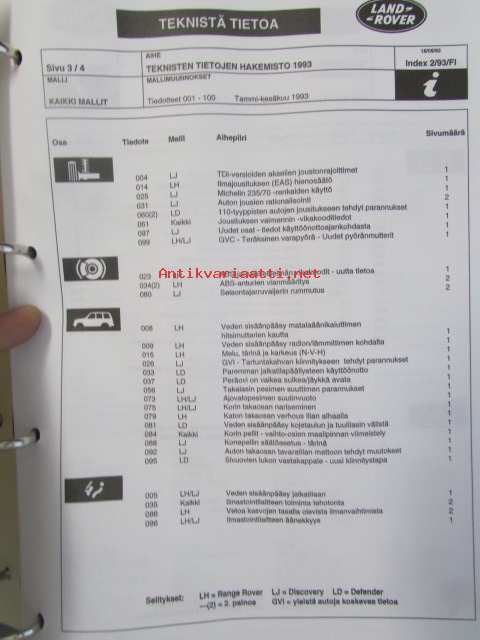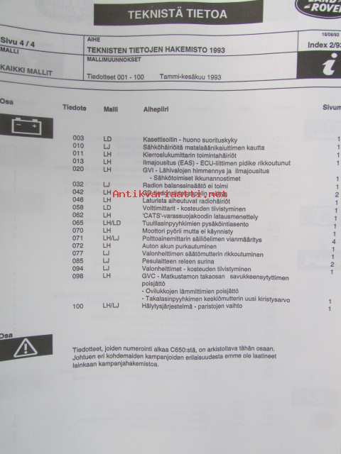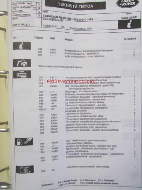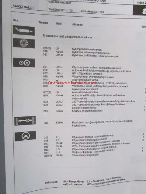 British Leyland Land-Rover Service Bulletins - Korjaamo-ohjeita, katso tarkemmat mallit ja sisällysluettelo kuvista