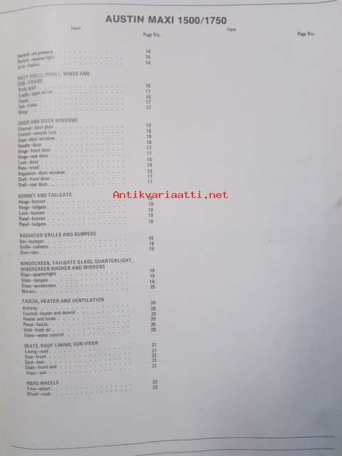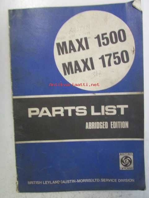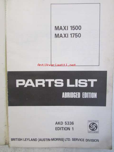 British Leyland Austin Maxi 1500, 1750 Parts List abridged edition 1976 1st edition AKD 5336 - varaosaluettelo