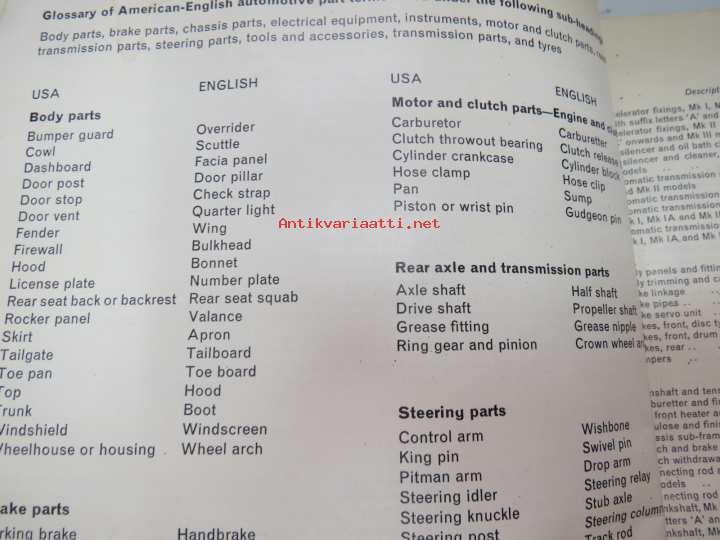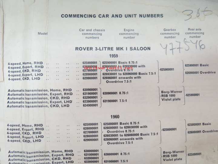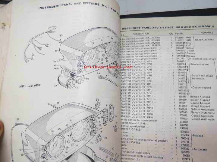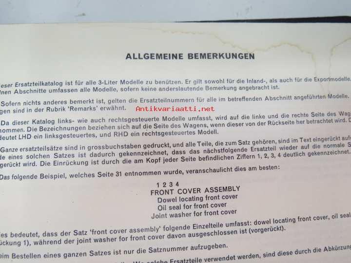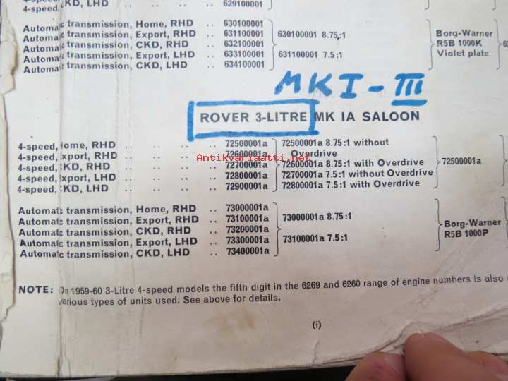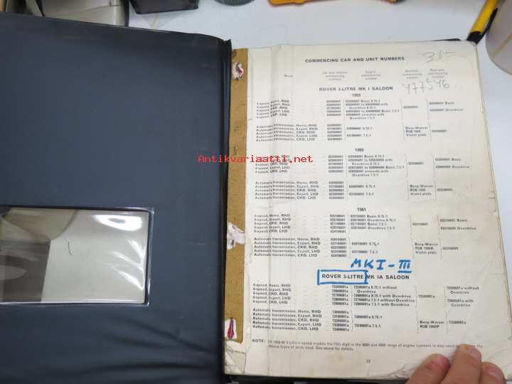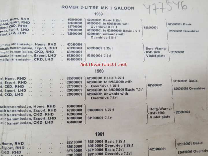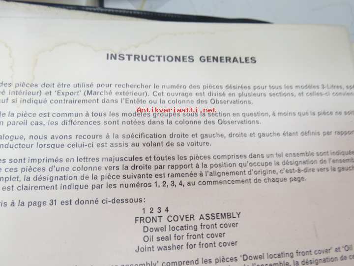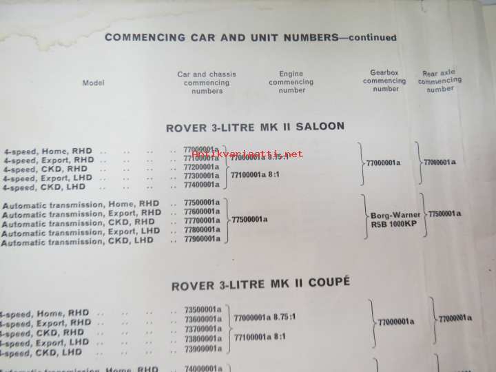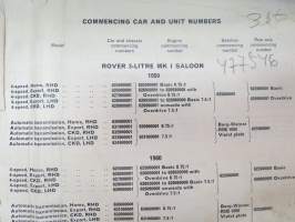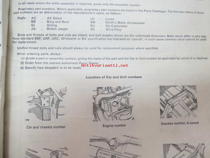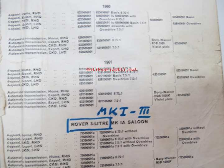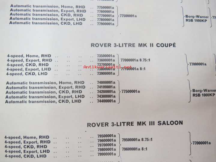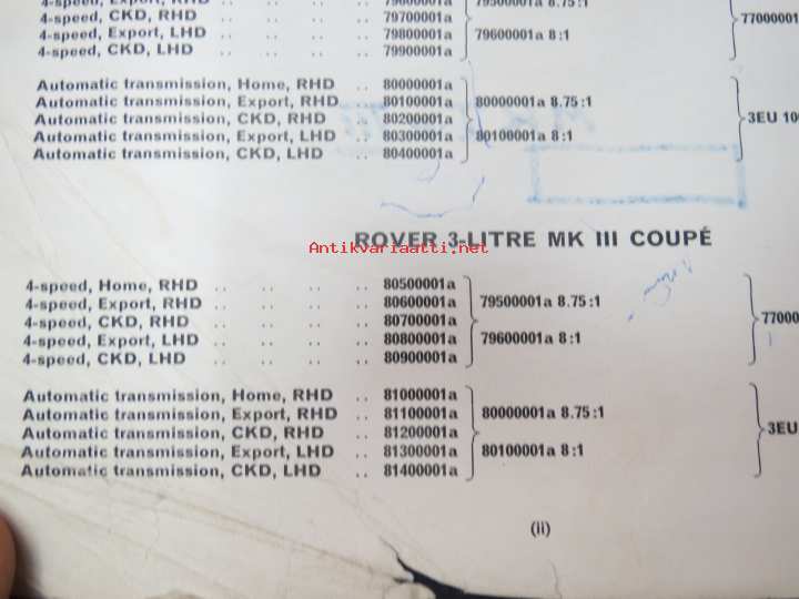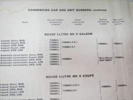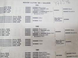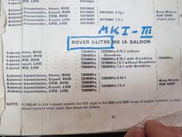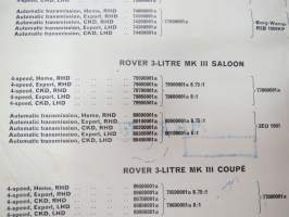 BMC Rover 3-litre MK I - III Saloon, Mechanical Service Parts List- Varaosaluettelo, Katso tarkemmat mallit ja sisällysluettelo kuvista