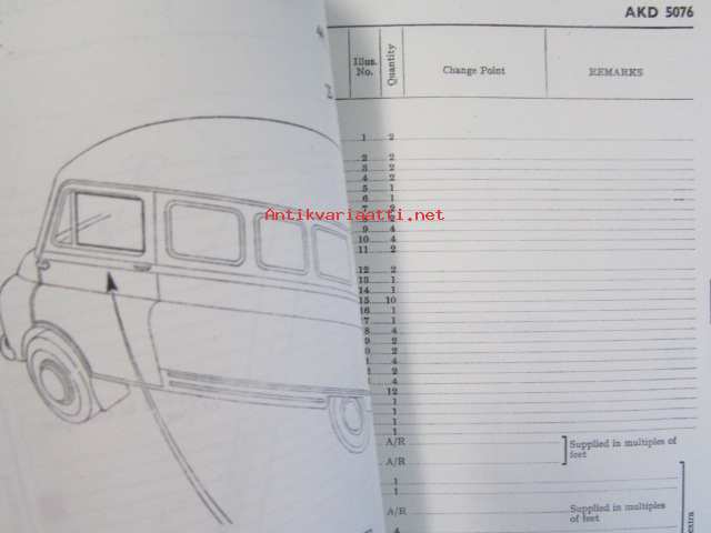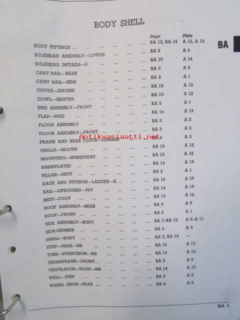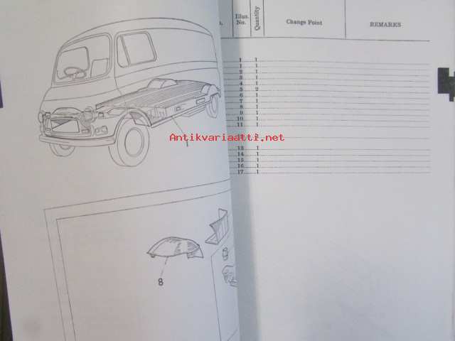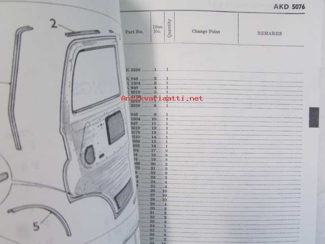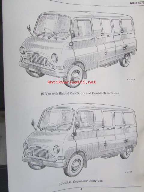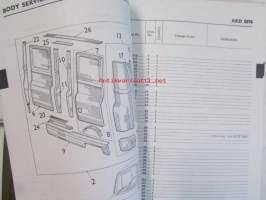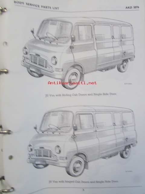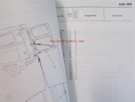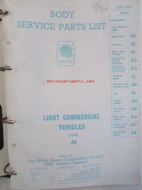 BMC Body Service Parts List Parts Catalogue The Austin 6-CWT. and 8-CWT, Civilian Van, Pick-up, Chassis and Cab the Morris Quarter-ton, 6-CWT. and 8-CWT. Civilian Van, Pick-up, Chassis and Cap, and G.P.O. postal and engineering Van. (AKD 3575) - Varaosakirja, Katso tarkemmat mallit ja sisällysluettelo kuvista