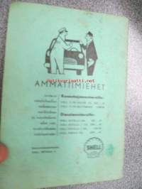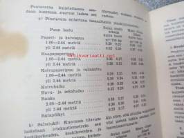 | Saatavilla | 1 kpl | | Julkaisuvuosi | 1958 | | Sivuja | 30 | | Painos | 1. | | Kunto | K2 | | Kulunut, likainen | | Sidonta/painoasu | Nidottu (pehmeäk.) | | Kielet | Suomi |