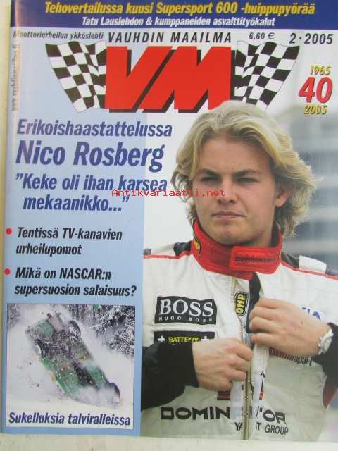 Vauhdin Maailma 2005 nr. 2 -mm. Nico Rosberg, Ralli-SM Rovaniemi, Ralli-MM Monte Carlo, Marcus Gronholm, Nuorten SM & Lady Cup Kauhava, F-Cup Raisio, Vajalinna