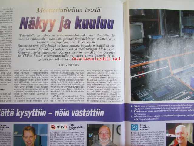 Vauhdin Maailma 2005 nr. 2 -mm. Nico Rosberg, Ralli-SM Rovaniemi, Ralli-MM Monte Carlo, Marcus Gronholm, Nuorten SM & Lady Cup Kauhava, F-Cup Raisio, Vajalinna Ralli Hämeenlinna, TV & Moottoriurheilu, Formula 1 2005, Jochen Rindt, Formula Ford -historia osa 3, Nascar, Dakar-ralli, Hankiralli 50 vuotta, VM Maistelee Mitsubishi Colt CZT 1,5 Turbo, Muoviosien korjaus, VM Vertailee Kuusi Supersport-luokan ratapyörää, Kelkka-MM Norja, MP 05 -näyttely Helsinki, Elämäni kisa Jan-Ulf Ingman, Sisältää moottoriurheilu kalenterin.21 x 29 cm.