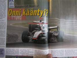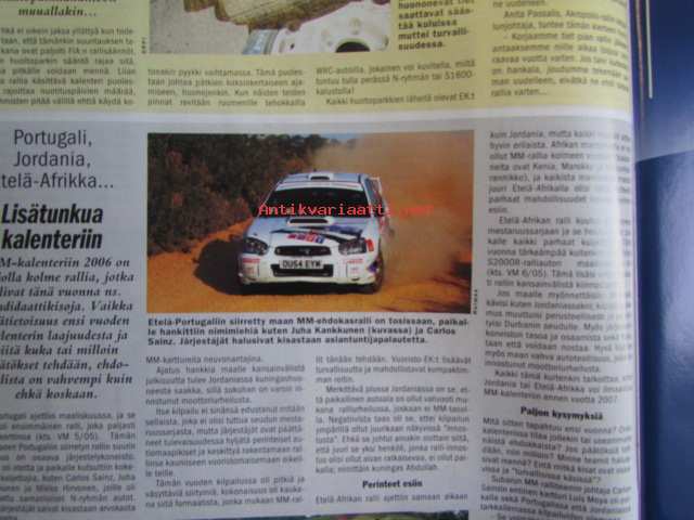 Vauhdin Maailma 2005 nr. 7 -mm. MM-rallien tulevaisuus, Mitsubishi ja Neste Ralli, Ralli-MM Turkki, Kreikka ja Valkeakoski, Guy Colsoul Rallysport, Ralli-SM Nuoret & Lady Cup Hankasalmi, Formula 1 Kanda & USA, Le Mans 24h, Seinäjoen Vauhtiajot, Indianapolis 500, Siipiautojen-MM Kouvola, Rata-SM Ahvenisto, Rata-SM Tallinna, SRC- ja div. 2-SM Oulu, KRC-SM Somero, Extreme-rallycross Ruotsi, JM-SM Naiset & Nuoret Kauhajoki, Rallisprint-SM Parkano, VM vertailee Roadsport-luokan Sunbeam imp VW1303, Ford Cortina, Ford Escort, BMW 325, Opel Ascona, VM Maistelee Seat Leon 2.0 TFSI, RR-MM Italia & Espanja, Enduro-MM Espanja, Elämäni kisa Pertti Mikkola.21 x 29 cm.