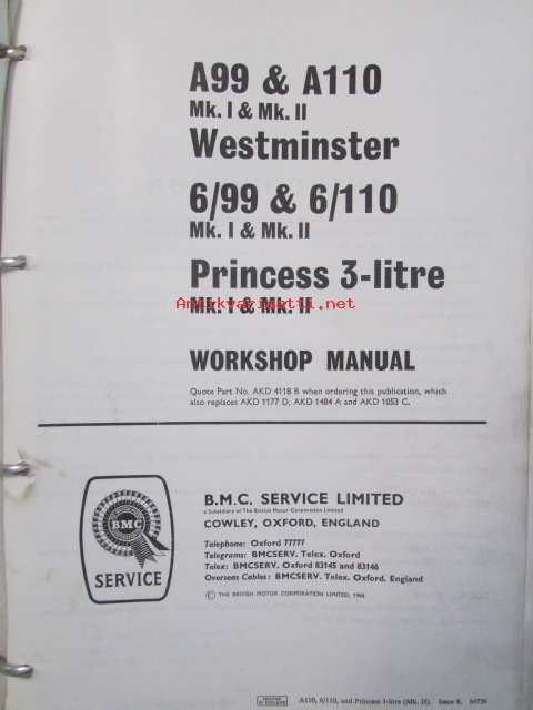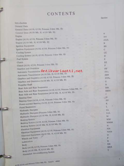 BMC A99 & A110 Westminster, 6/99 & 6/110 Princess 3-litre Mks. I & II, Workshop Manual -Korjauskäsikirja, Katso tarkemmat mallit ja sisällysluettelo kuvista