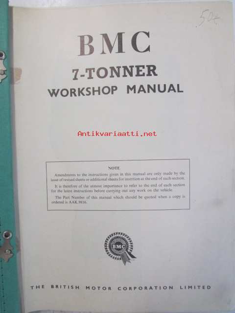 BMC 7-Tonner, Workshop Manual -Korjauskäsikirja, Katso tarkemmat mallit ja sisällysluettelo kuvista