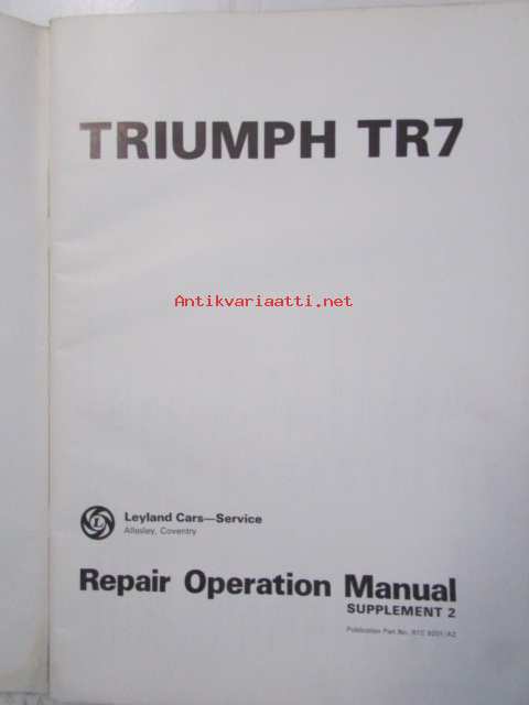 Leyland Triumph TR 7, Repair Operation Manual Supplement 2, (Part No RTC 9201/A2) -Korjauskäsikirja, Katso tarkemmat mallit ja sisällysluettelo kuvista
