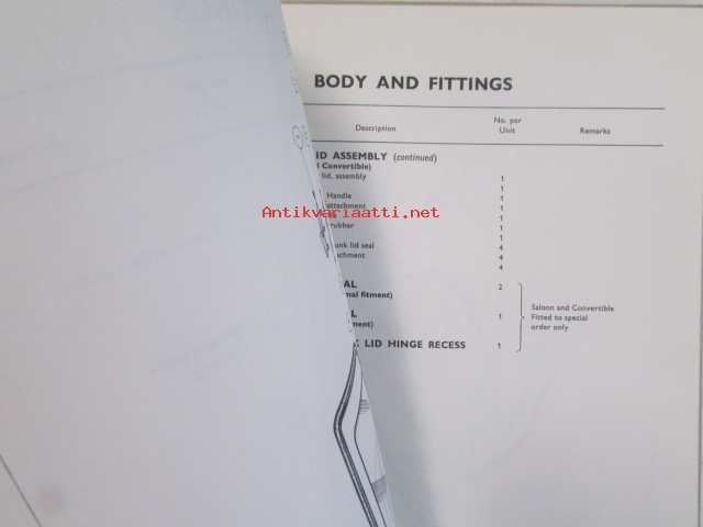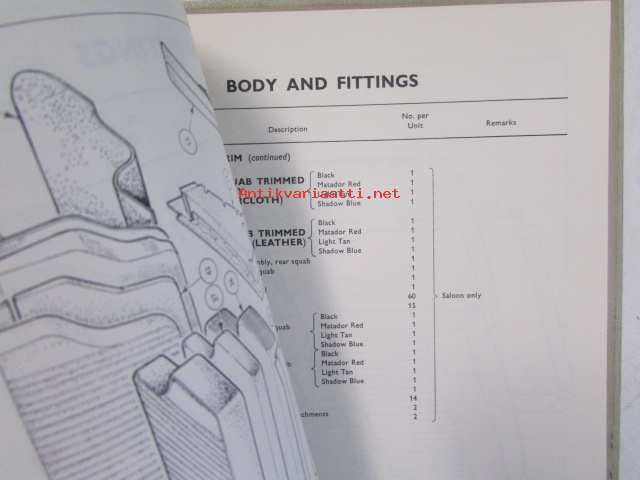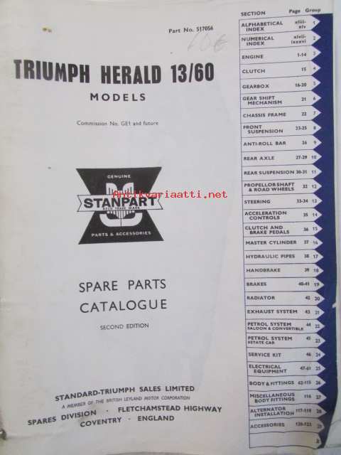 British Leyland Triumph Herald 13/60 Models, Commission No GE1 and Future, Spare Parts Catalogue (Part No. 517056), Varaosaluettelo, Katso tarkemmat mallit ja sisällysluettelo kuvista