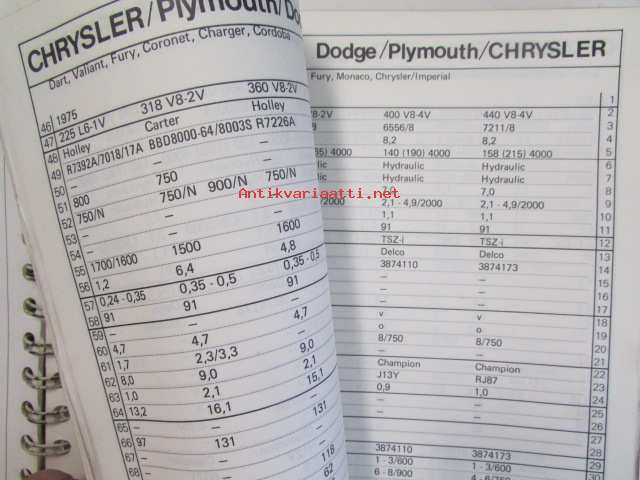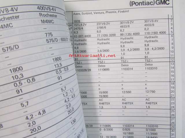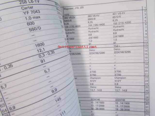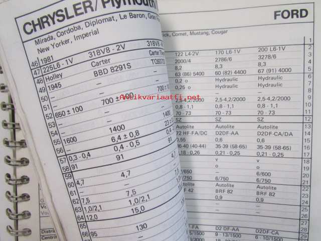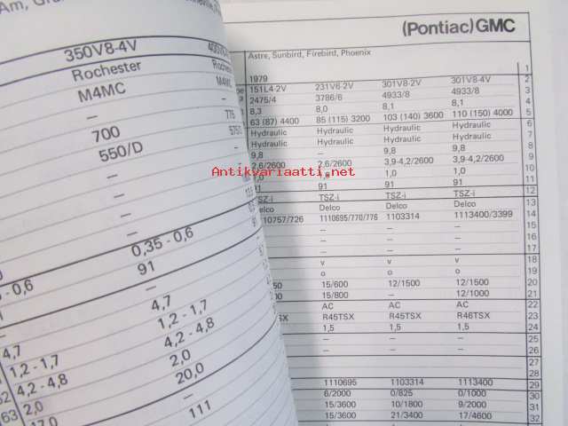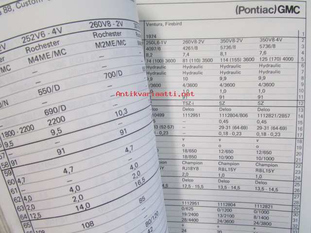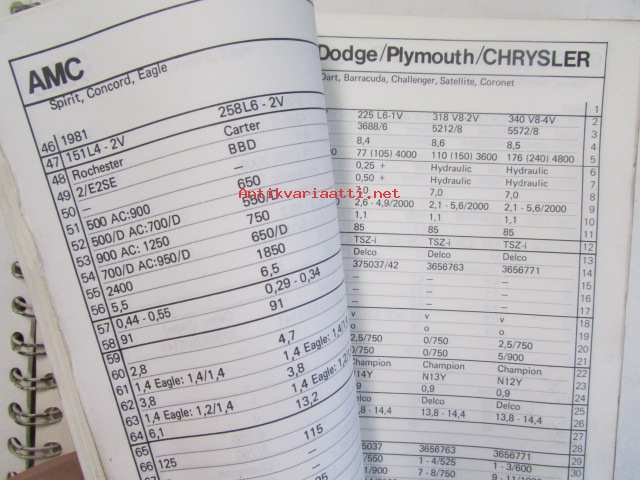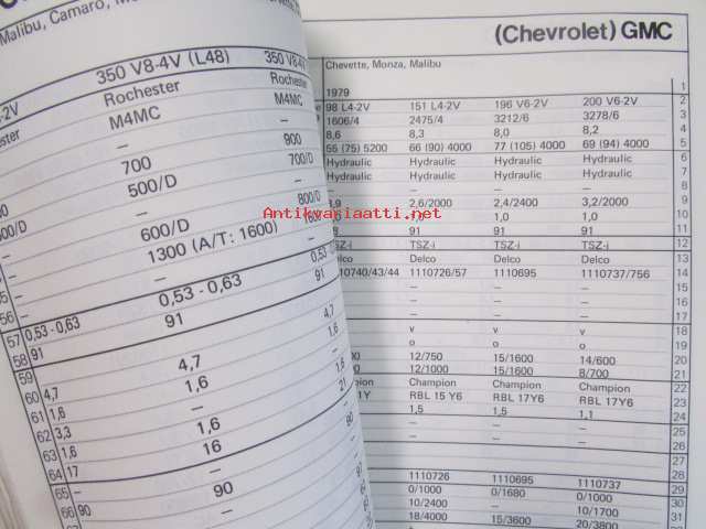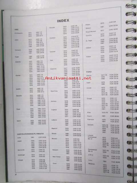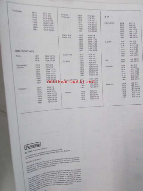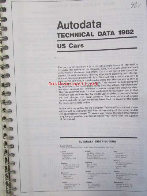 Autodata Technical Data 1982 US Cars, Katso tarkemmat mallit ja sisällysluettelo kuvista