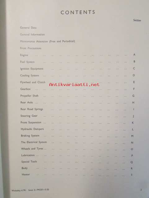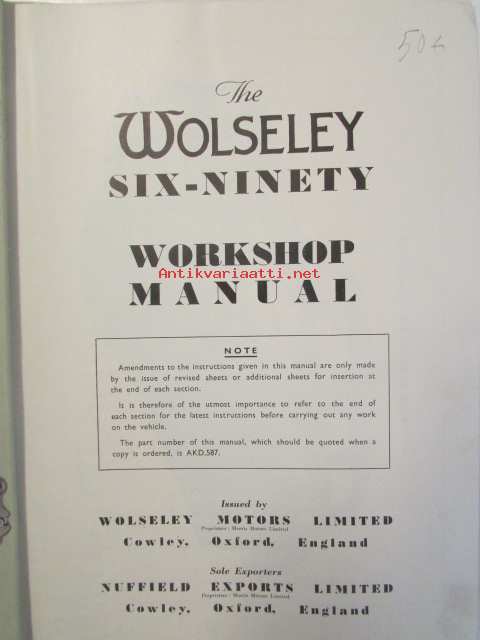 The Wolseley six-ninety Workshop manual (AKD 587) - Korjauskäsikirja, Katso tarkemmat mallit ja sisällysluettelo kuvista
