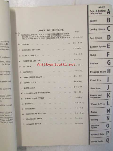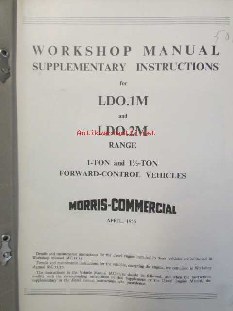 Morris-Commercial Workshop Manual Supplement Instructions LDO.1M and LDO2M range 1 Ton and 101/2 ton Forward-Control Vehicles, MC11/10 - Korjausohjekirja, Katso tarkemmat mallit ja sisällysluettelo kuvista