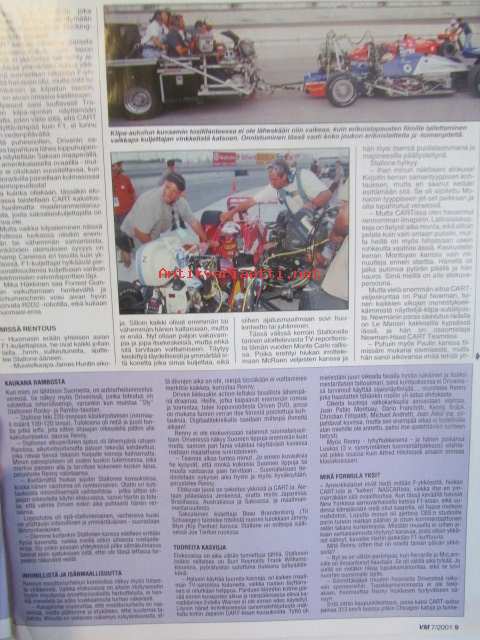 Vauhdin maailma 2001 nr 7 -mm. Driven-elokuva, JM SM yleinen joensuu, JM SM-naiset ja nuoret Pieksämäki, F1-MM Monaco ja Kanada ja Eurooppa, Indy 500, Le Mans