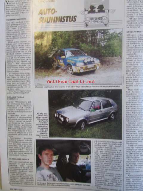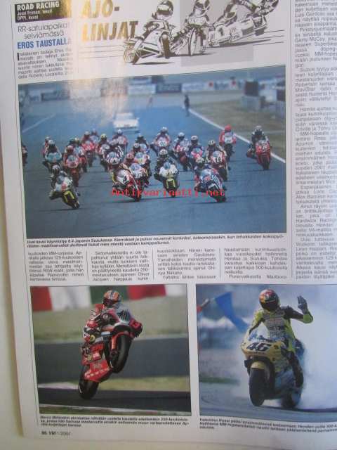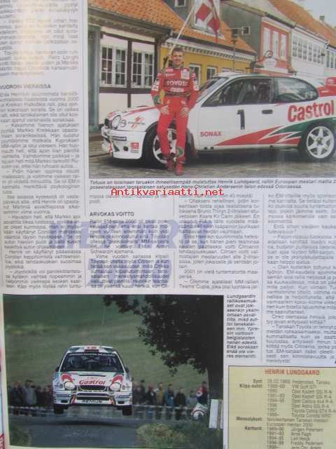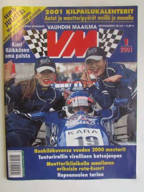 Vauhdin maailma 2001 nr 1 -mm. F1 ja nuoruus, maailmanmestari Marcus Grönholm, Maailmanmestari MIchael Schumacher, Euroopanmestari Henrik Lundgaard, Artic Lapland rally -katsojaopas, Cosworth-moottori, Peugeot sport 2001, Michelin race of champions Kanaria, Mercedes Benz kilpailuhistoria, F1 2001, USA 2000, Palkintogaalat fia ja akk ja sml, jääspeedway mm-finaali 3.-4.4. Oulunkylä, VM Moottoriklinikka Ford escort cosworth by SRT, VM maistelee Seat Ibiza Sport 20 Vt 1,8 Toyota cecilia 1.8 VVTL-i Clio renault sport 16V Caviga raptor 1000.21 x 29 cm.