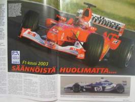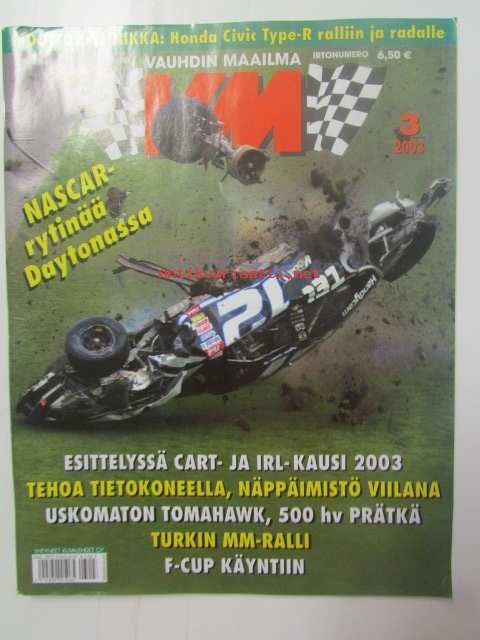 Vauhdin Maailma 2003 nr 3 -mm. F1 2003, daytone 500, CART ja IRL, jäärata SM Kurikka Kauhava, Ralli-MM Ruotsi Turkki, Ralli SM nuoret ja lady cup Vihti, Ralli-SM