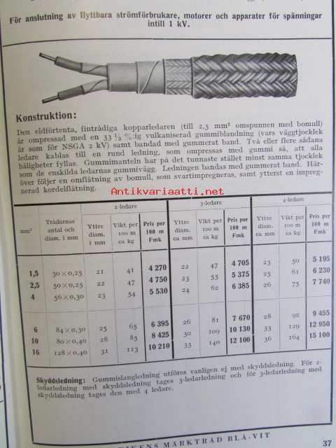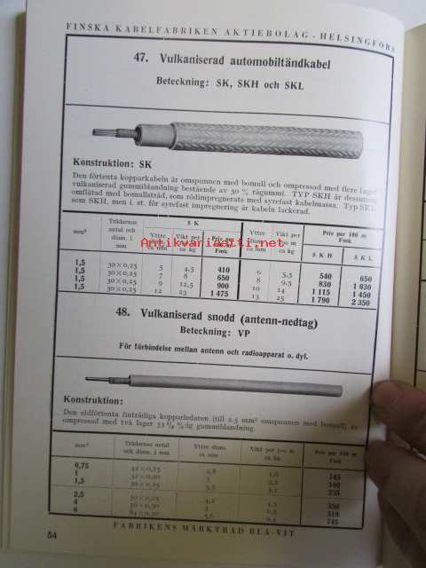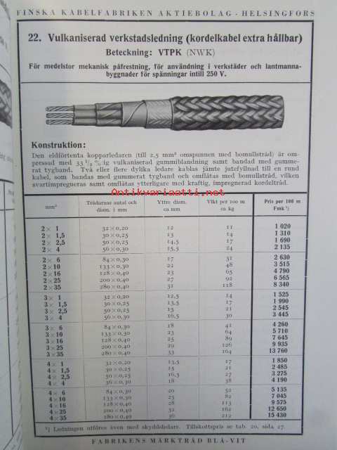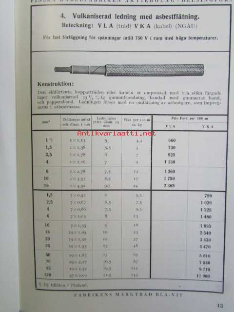 Finska Kabelfabriken Aktiebolag Helsingfors Katalog över Alaktriska ledningar april 1937